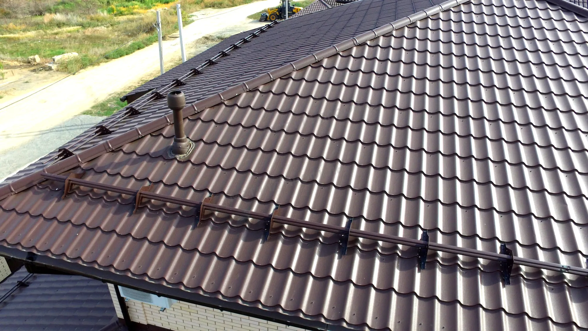 Установка металлочерепицы производится путем крепления листов кровли к каркасу здания с использованием специальных крепежных элементов.