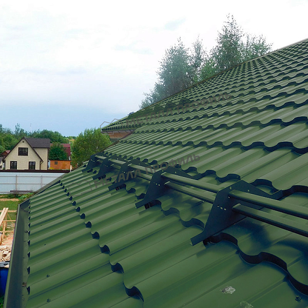 Установка металлочерепицы производится путем крепления листов кровли к каркасу здания с использованием специальных крепежных элементов.