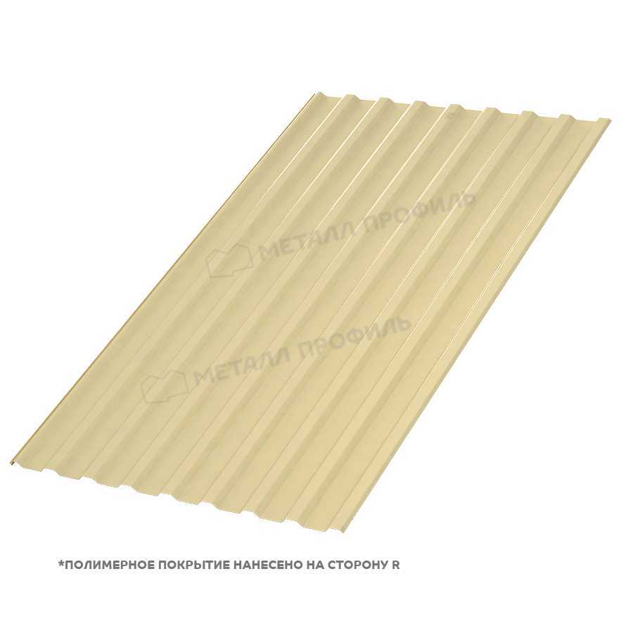 Профлист МП-20 с толщиной 0,5 мм и покрытием из полиэстера в цвете RAL 1014 (слоновая кость) представляет собой надежный материал для кровли и фасадов. Он сочетает прочность металла с эстетичным внешним видом, подходящим для различных строительных проектов. Сторона A обеспечивает оптимальную защиту и долговечность.